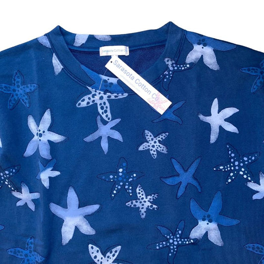 Sarasota Cotton 1X Navy Starfish Siesta Key French Terry Pullover Sweatshirt