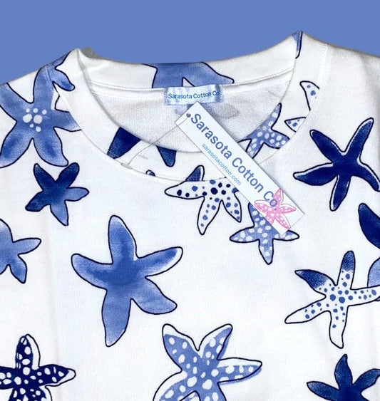 Sarasota Cotton 1X White Starfish Siesta Key French Terry Pullover Sweatshirt